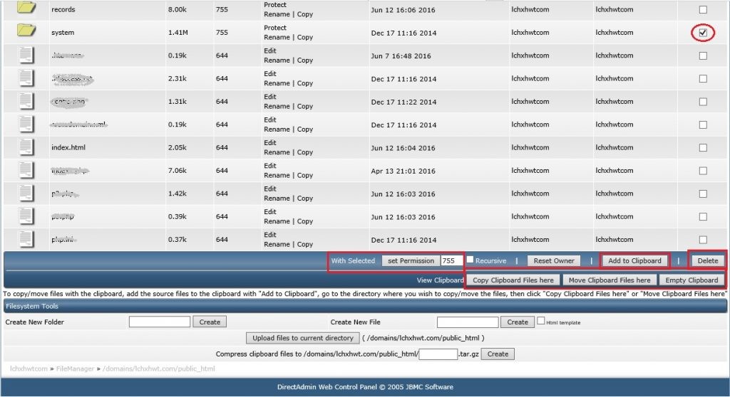 مدیریت فایلها در کنترل پنل DirectAdmin