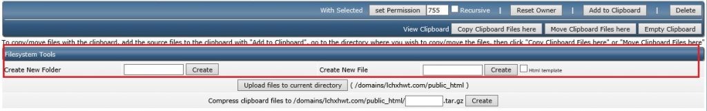 جهت Upload و بارگذاری فایل ها بر روی Upload filesto current directory که در پایین صفحه نمایان است، کلیک کنید. در این قسمت شما می توانید فایل های سایت را در مسیری که در آن قرار دارید آپلود نمائید.