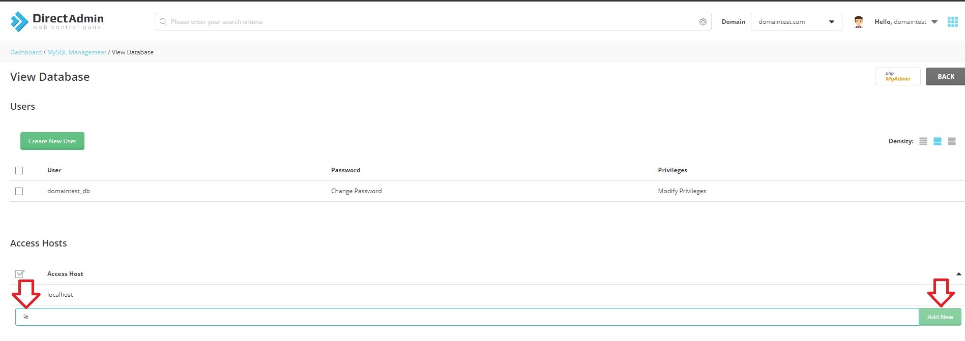 در صفحه باز شده در کادر مقابل Add Host کارکتر % را وارد کرده و روی Add New کلیک نمایید.