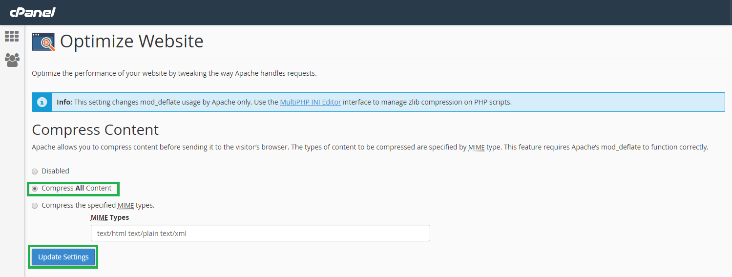 3- سپس گزینه ی Compress All Content را انتخاب نموده و Update Settings را فراخوانی نمایید.
