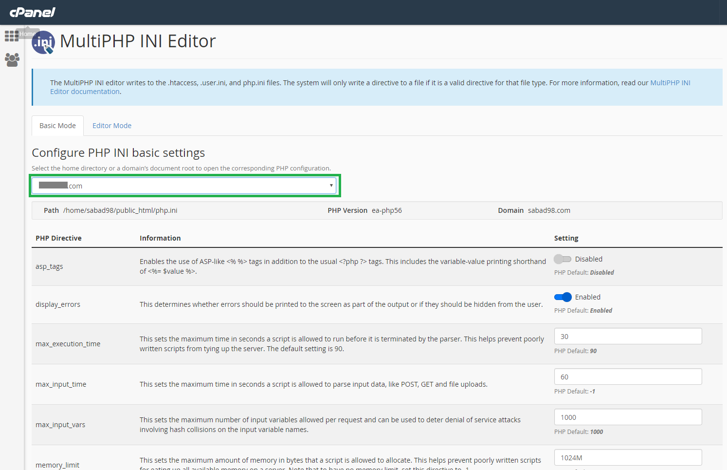 5- از قسمت Configure PHP INI basic settings سایت مورد نظر را انتخاب نمائید.